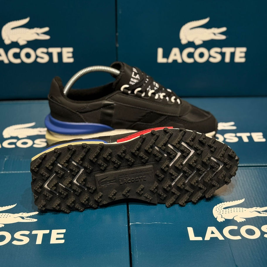 Tasarım: Siyah üst yüzey, yanlarda Lacoste logosu ve ikonik timsah amblemi. Topuk kısmında mavi ve kırmızı detaylar bulunur.